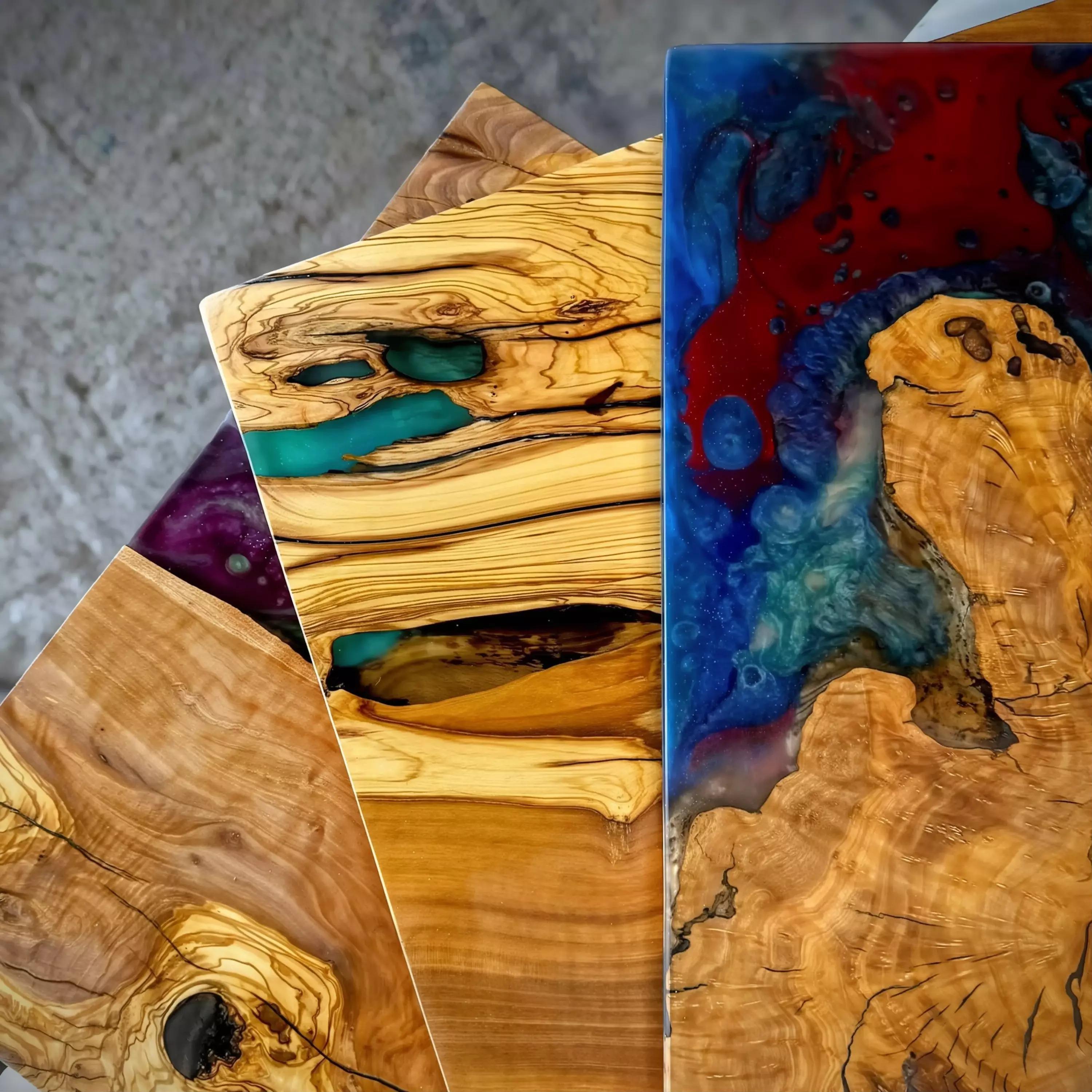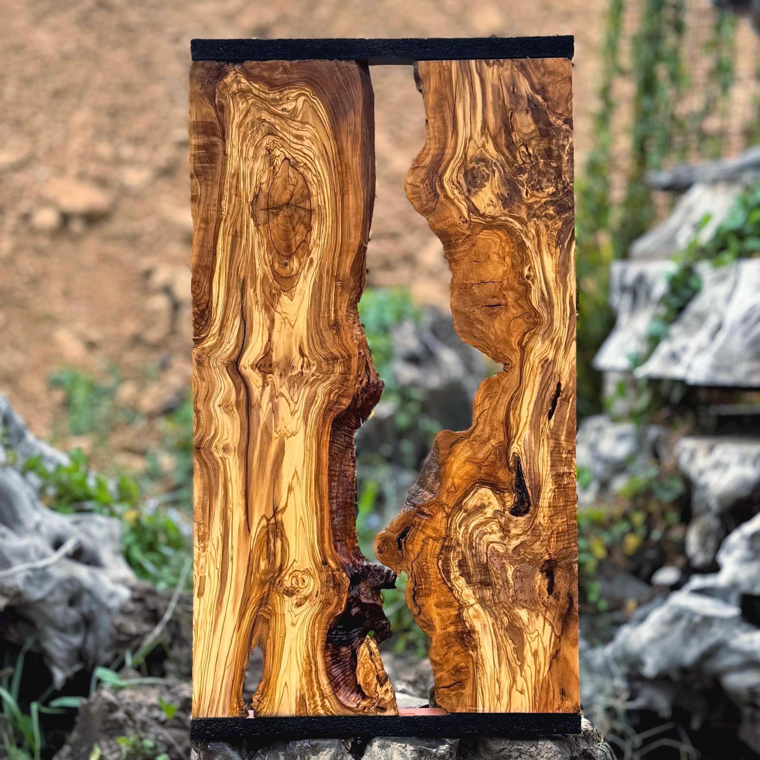 We sell raw olive wood in our Etsy store. Our customers can create various finished products according to their imagination. For example, epoxy tables, epoxy clocks, wall decorations, presentation boards, serving boards, mirrors, coat racks, tables, coffee tables, furniture, shelves, dressers, sink countertops, lighting fixtures, hobby materials, and wood carving can all be made using our material.